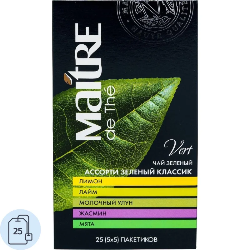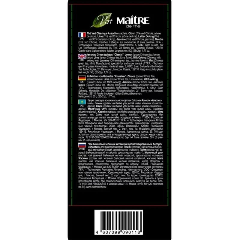 Чай Maitre зеленый, ассорти, 25 пакетиков