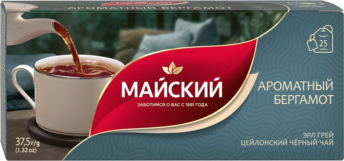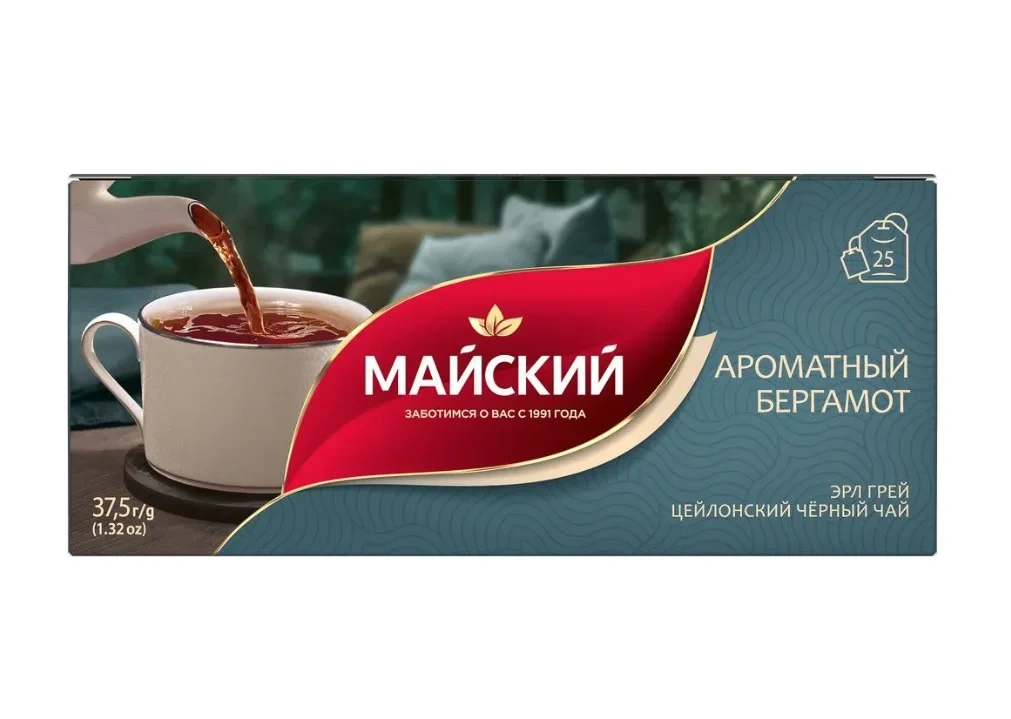 Чай Майский Ароматный Бергамот, черный, 25 пакетиков