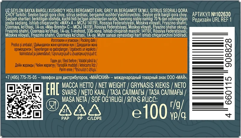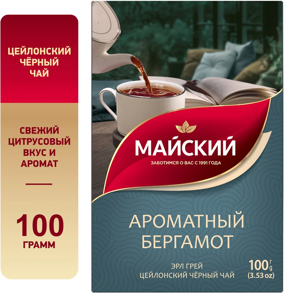Чай Майский Ароматный Бергамот, черный, листовой, 100г