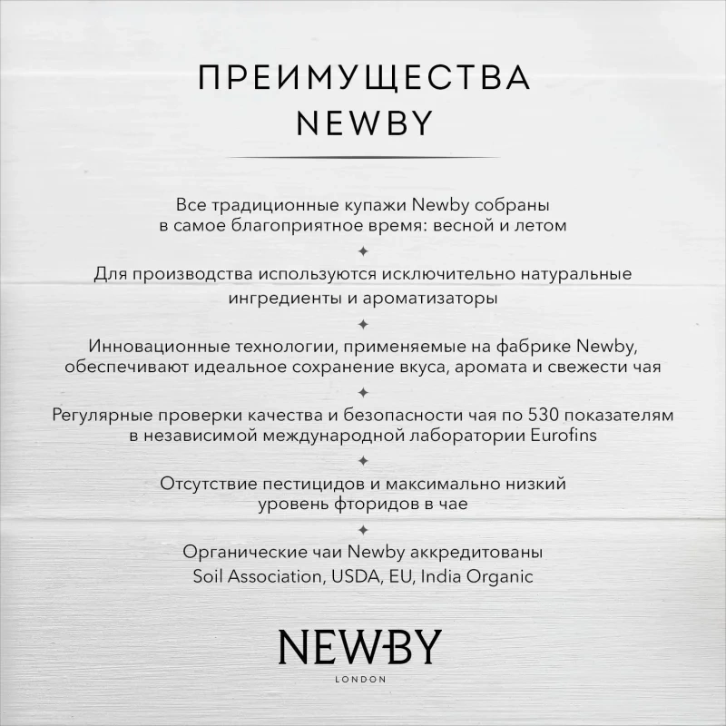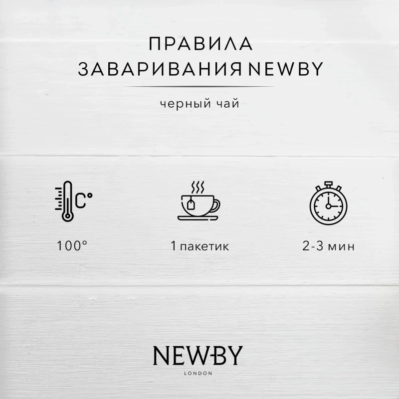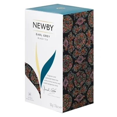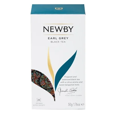 Чай черный Newby Earl Grey 25 пакетиков (бергамот). Знаменитый черный чай с освежающими цитрусовыми нотками. Эрл Грей, названный в честь британского премьер-министра, несомненно, является любимым чаем англичан. Черный чай, ароматизированный натуральным маслом бергамота, при заваривании дает сбалансированный настой яркого цвета с приятным шелковистым послевкусием.