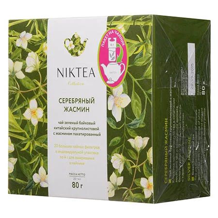 Чай Niktea Silver Jasmine (Серебряный Жасмин), зеленый, 20 пакетиков для чайника