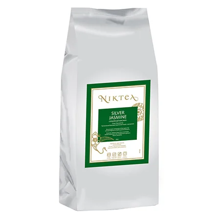 Зеленый листовой чай Niktea Silver Jasmine - это классика чайного искусства в сочетании свежего весеннего чая и воздушного аромата белого жасмина.