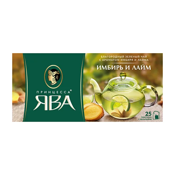 Чай Принцесса Ява Имбирь и лайм, зеленый, 25 пакетиков