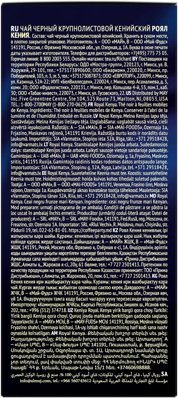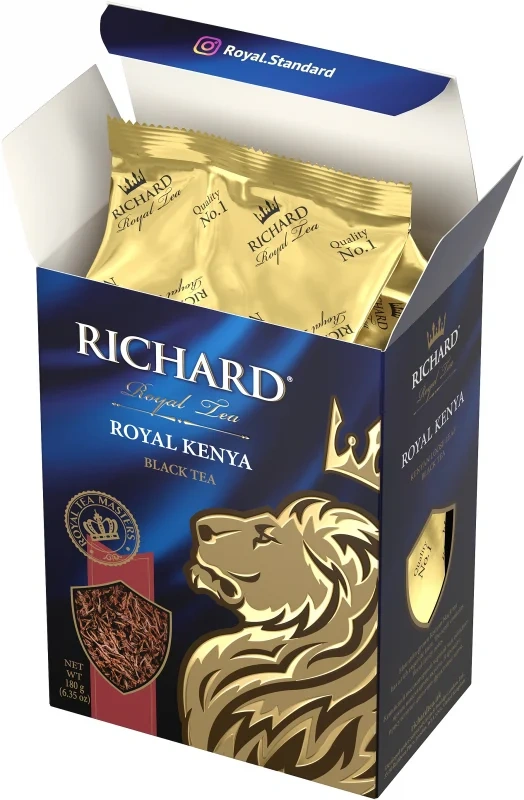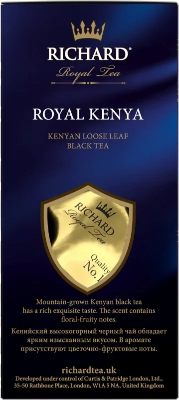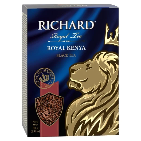 Чай Richard Royal Kenya черный крупнолистовой, 180 г отличается высоким качеством и неповторимым вкусом. Представленный товар — удачный вариант для подарка друзьям, родственникам и коллегам — он оформлен в яркую упаковку. Фирма известна благодаря высокому качеству товаров — в производстве она использует только отборные сорта чая. Такой напиток гармонично сочетается с десертами, молочным и горьким шоколадом, выпечкой и дарит ощущение уюта и спокойствия. Способ приготовления: заварить чай следует свежекипяченой водой и настаивать несколько минут.