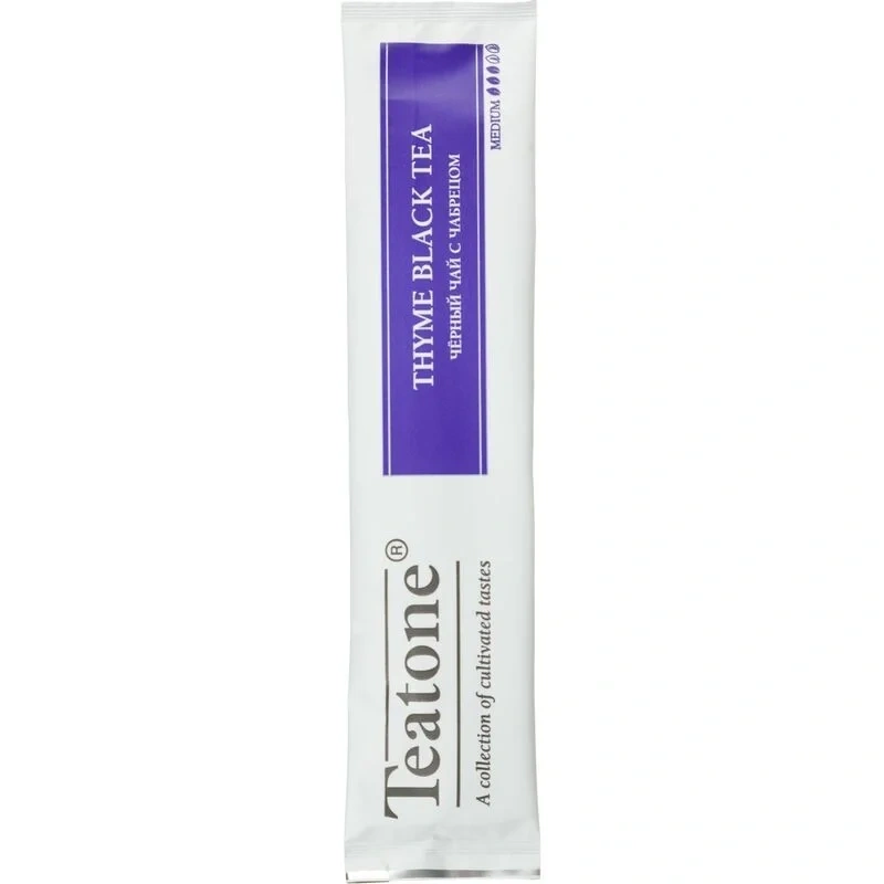 Чай черный Teatone 100 стиков (чабрец). Чай черный с чабрецом Teatone в стиках для разовой заварки. Чай с чабрецом обладает незабываемым вкусом и ароматом, является замечательным терморегулятором: в зимнюю пору он очень быстро согревает и утоляет жажду знойным летним днем.