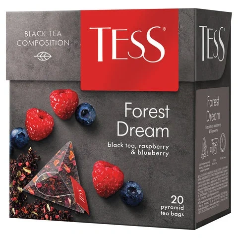 Чай черный Tess Forest Dream 20 пирамидок (малина, черника). Tess Forest Dream порадует ценителей уникальных вкусовых сочетаний и тех, кто желает разнообразить свои чаепития десертными вариантами. Насыщенный аромат создаст атмосферу праздника в любом месте, наполняя его уютом и теплом. Каждая чашка этого чая приносит множество приятных моментов, вдохновляет на новые свершения и оставляет яркие воспоминания. Уникальный букет ингредиентов тщательно подобран специалистами, обеспечивая высокое качество. Каждая пирамидка содержит точно отмеренную порцию для приготовления насыщенного, глубокого и вкусного напитка.