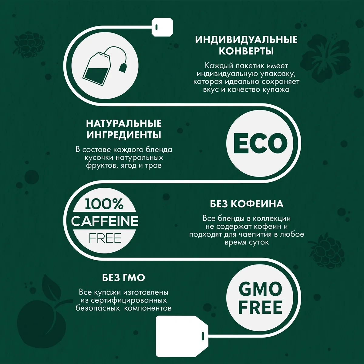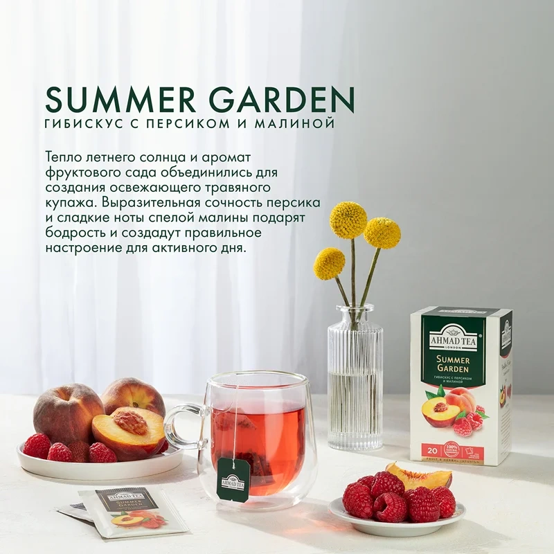 Тепло летнего солнца и аромат фруктового сада объединились для создания освежающего травяного купажа. Выразительная сочность персика и сладкие ноты спелой малины подарят бодрость и создадут правильное настроение для активного дня.