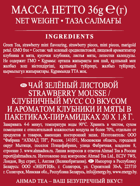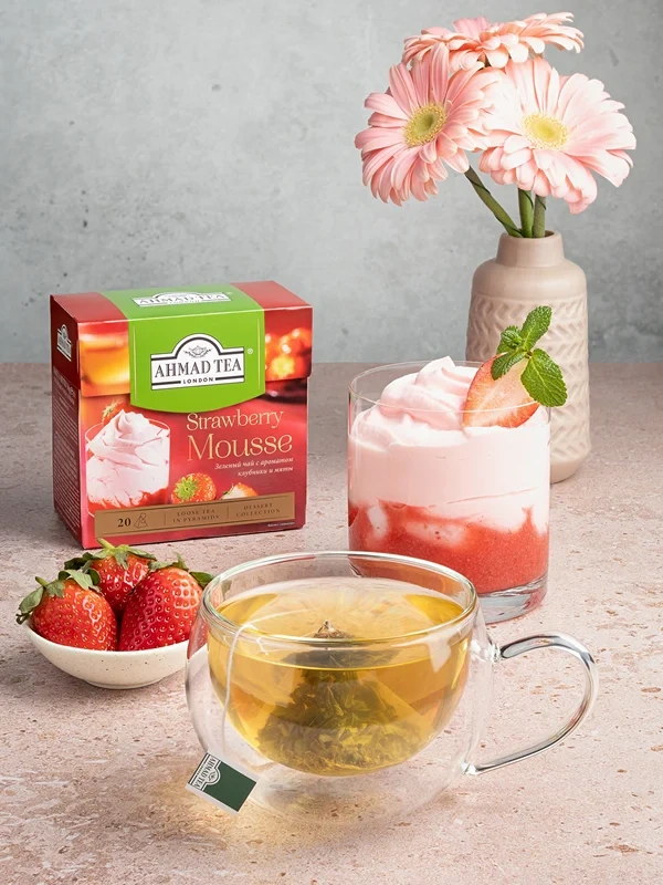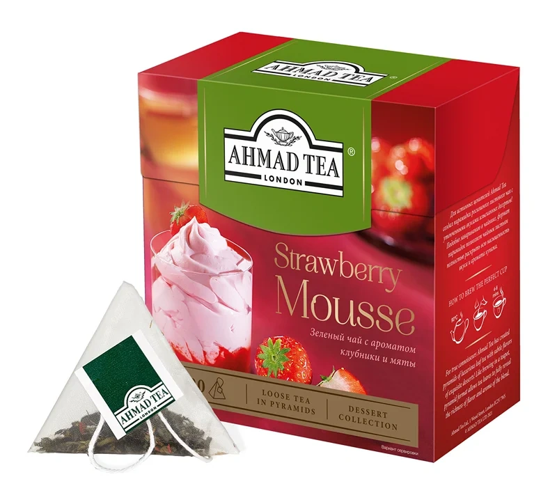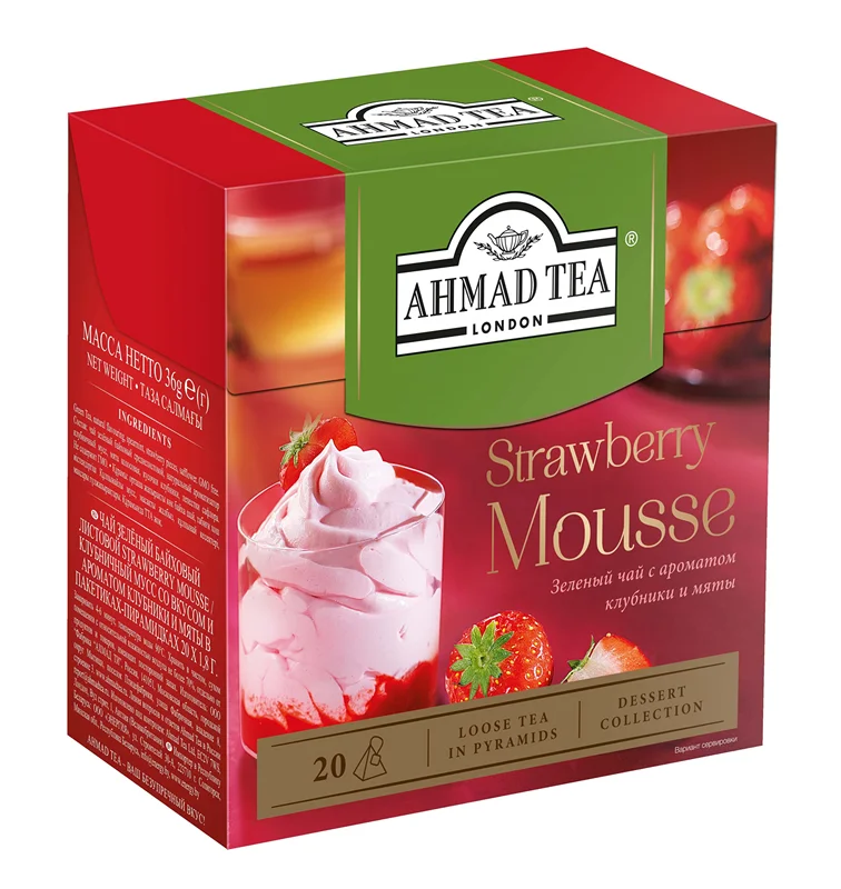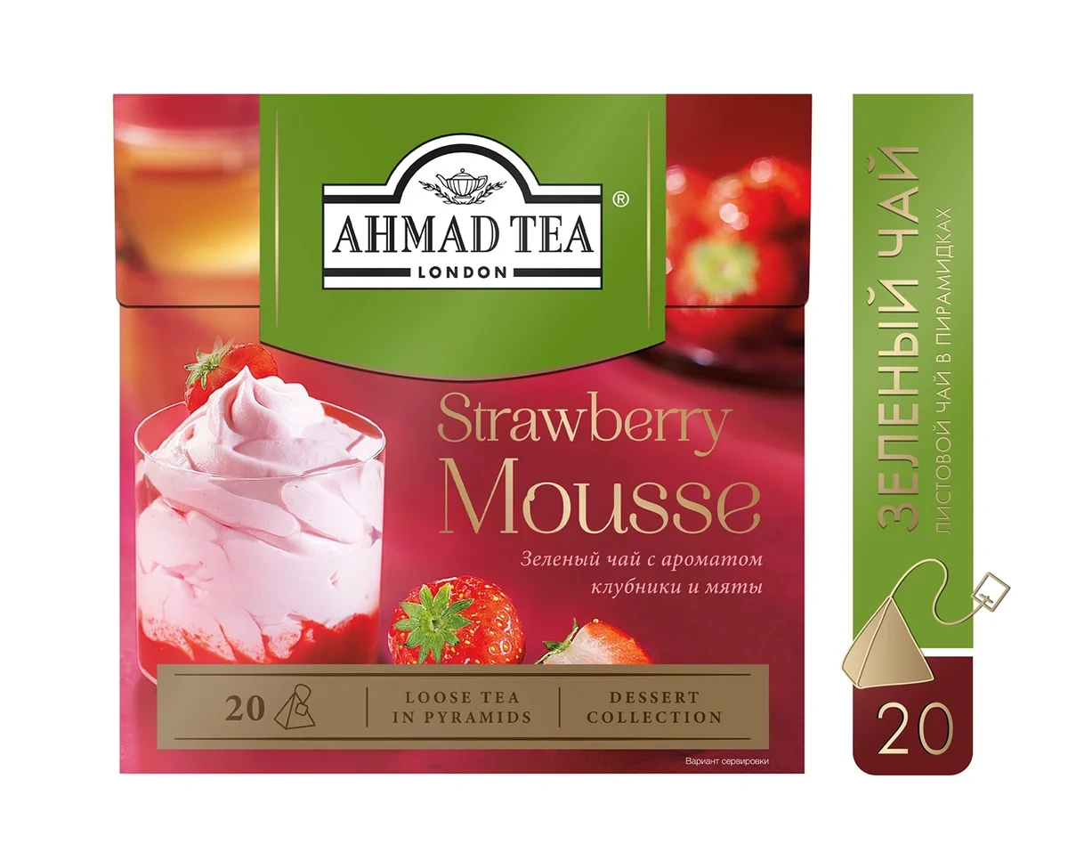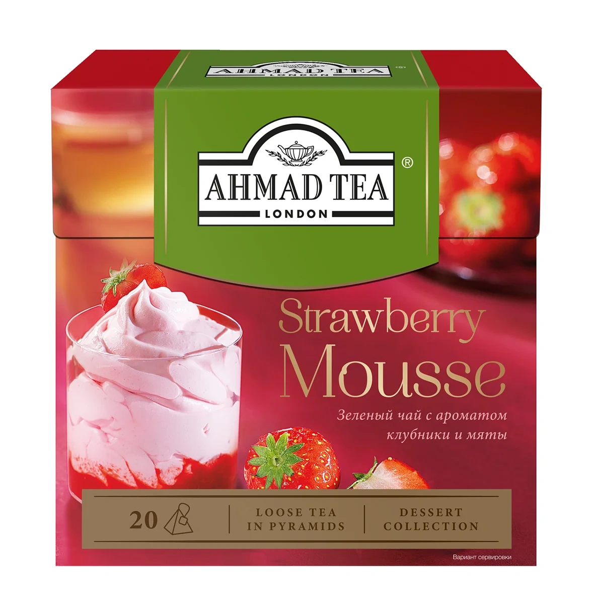Чай Ahmad Strawberry Mousse с клубникой и мятой, зеленый, 20 пирамидок