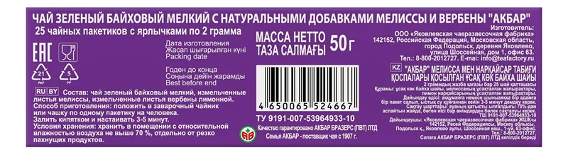 Чай Akbar Мелисса-Вербена, зеленый, 25 пакетиков