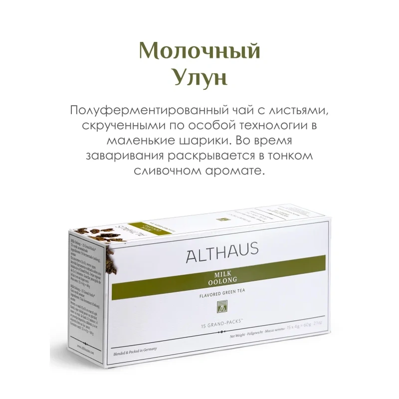 Чай Althaus Milk Oolong, зеленый, 15 пакетиков для чайников
