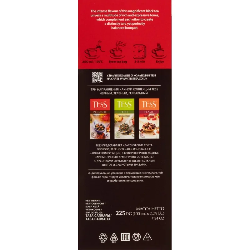 Чай Tess Pleasure (Плэжа), черный, 100 пакетиков
