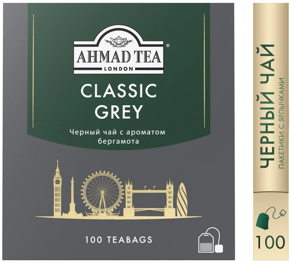 Чай Ahmad Classic Grey (Классик Грей), черный, 100 пакетиков
