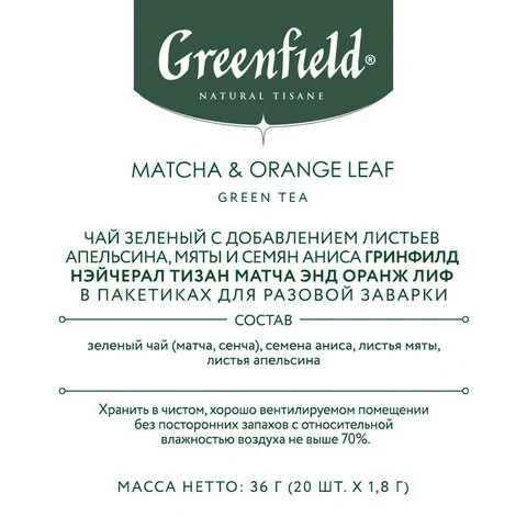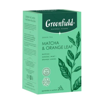 Чай Greenfield Natural Tisane Matcha & Orange Leaf (Матча энд Оранж лиф), травяной, 20 пирамидок