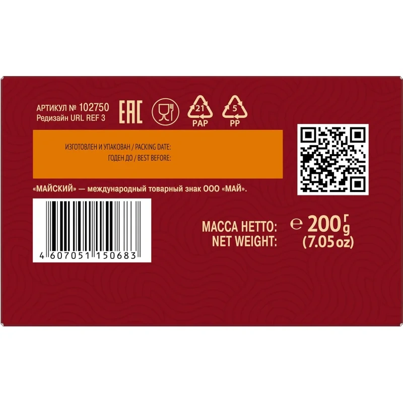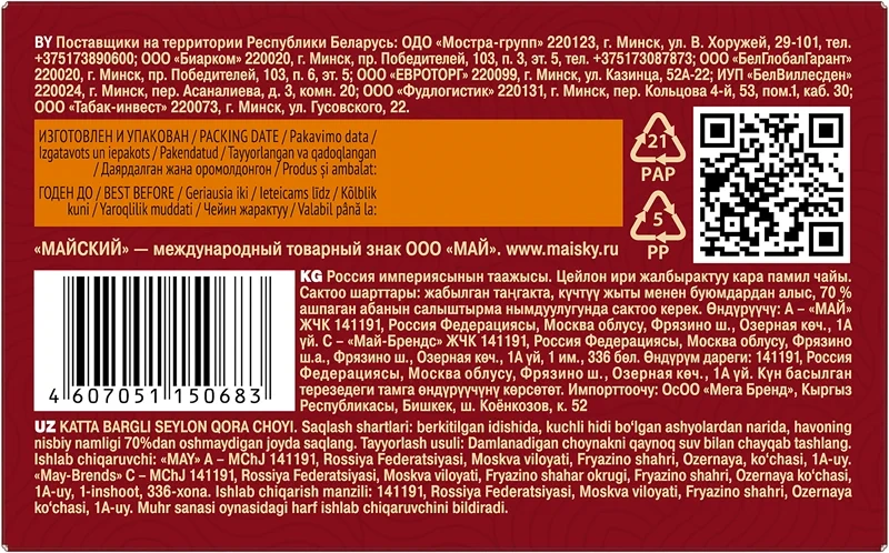 Чай Майский Ароматный бергамот, черный цейлонский байховый, 100 пакетиков