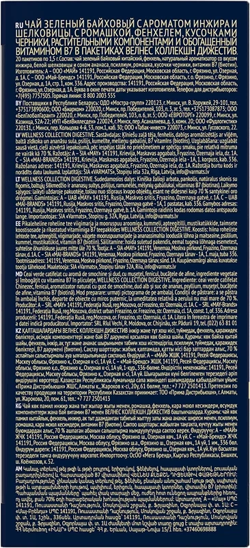 Чай зеленый Richard Digestive пакетированный (1.5г x 20шт), 30г