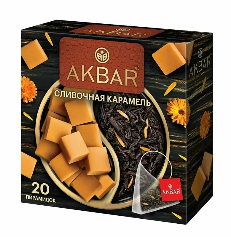 Чай Akbar Сливочная карамель, черный, 20 пирамидок