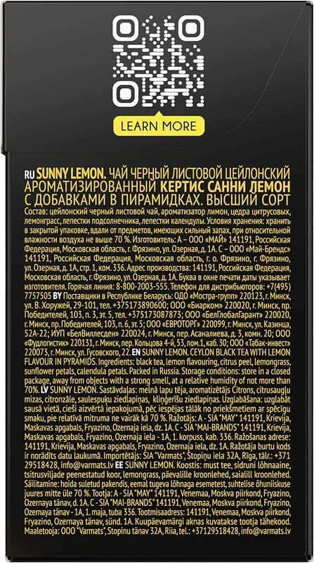 Чай Curtis Sunny Lemon, черный, 20 пакетиков