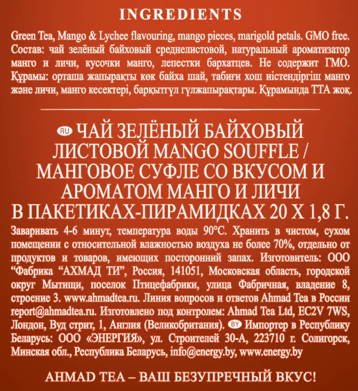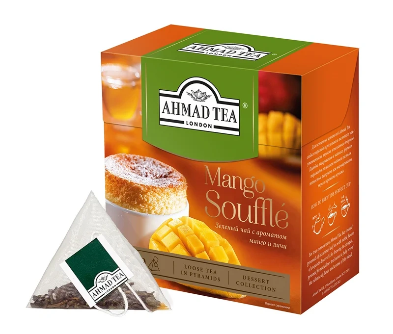 Чай Ahmad Mango Souffle с манго и личи, зеленый, 20 пирамидок