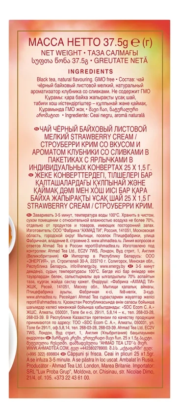 Чай черный Ahmad Tea Клубника со сливками (1.5г x 25шт), 37.5г