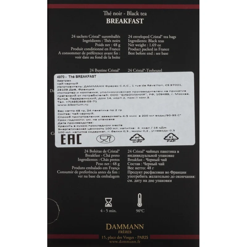Чай Dammann Ceylon O.P., черный, 24 пакетика