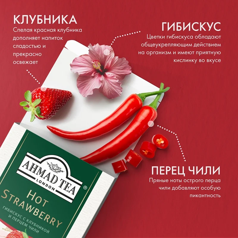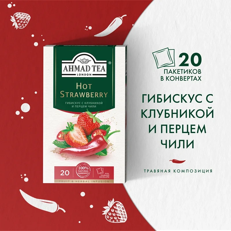 Чай травяной Ahmad Tea Гибискус-клубника-перец чили (1.8г x 20шт), 36г