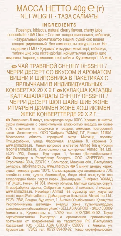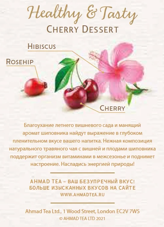 Чай Ahmad Tea с вишней шиповником и гибискусом (2г x 20шт), 40г