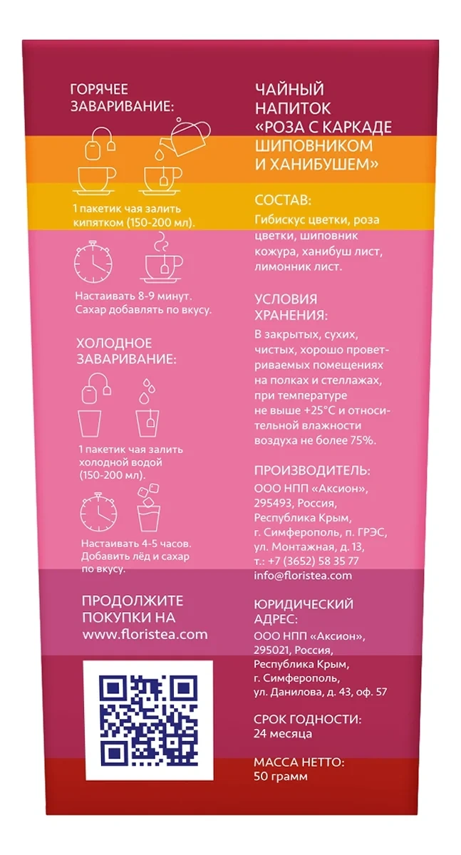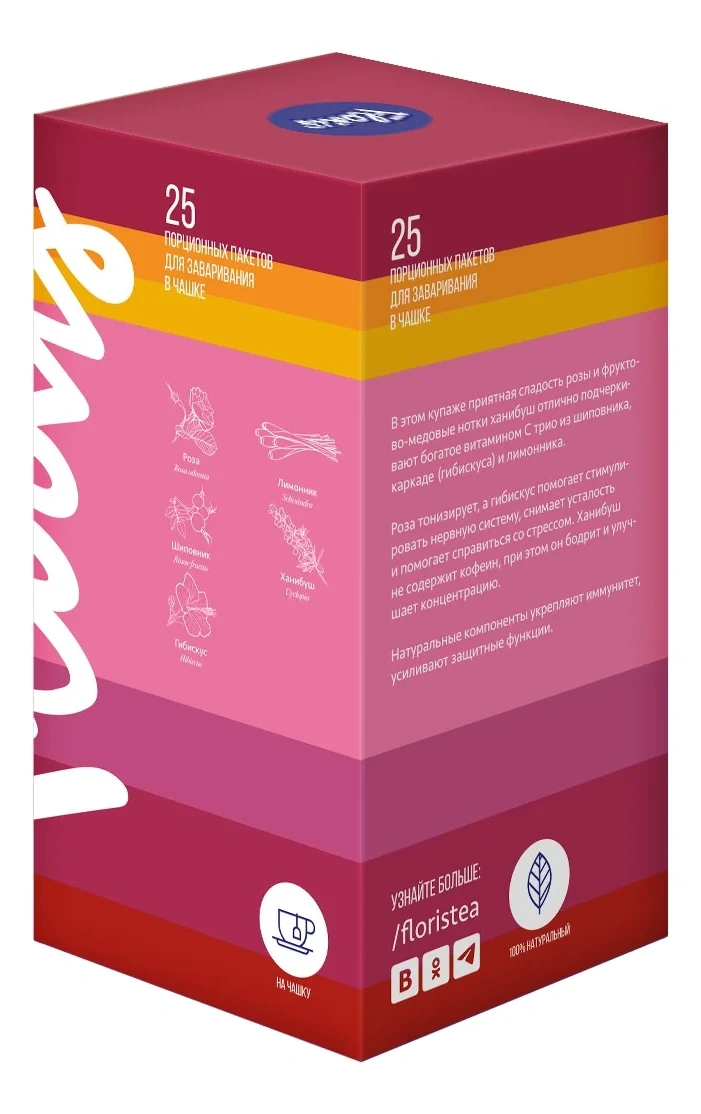 Чай травяной Floris Роза-каркаде-шиповник-ханибуш (2г x 25шт), 50г