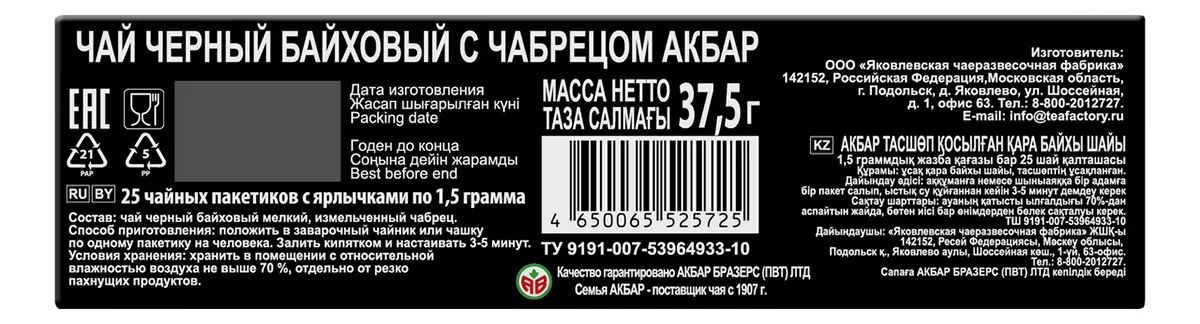 Чай черный Akbar чабрец пакетированный (1.5г x 25шт), 38г