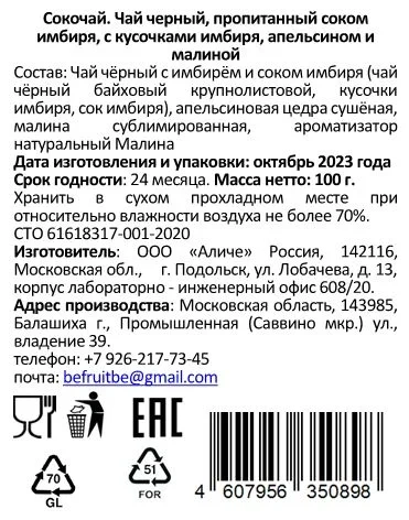 Чай черный Befruitbe имбирь-апельсин-малина, 100г