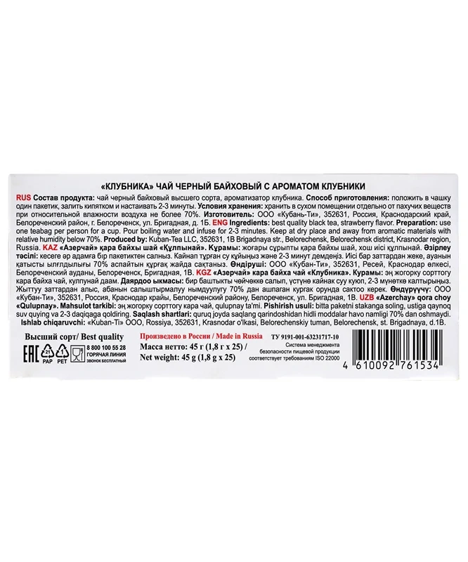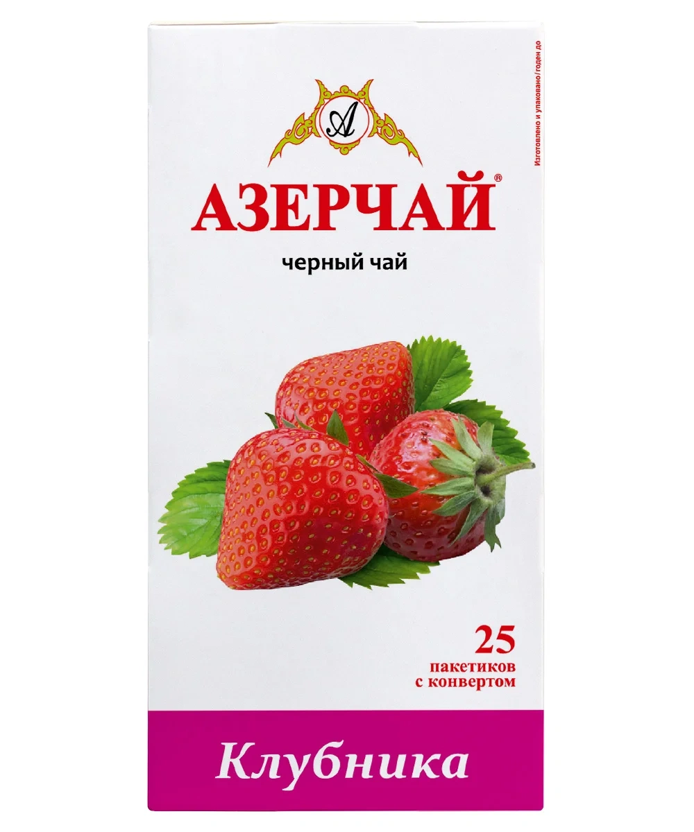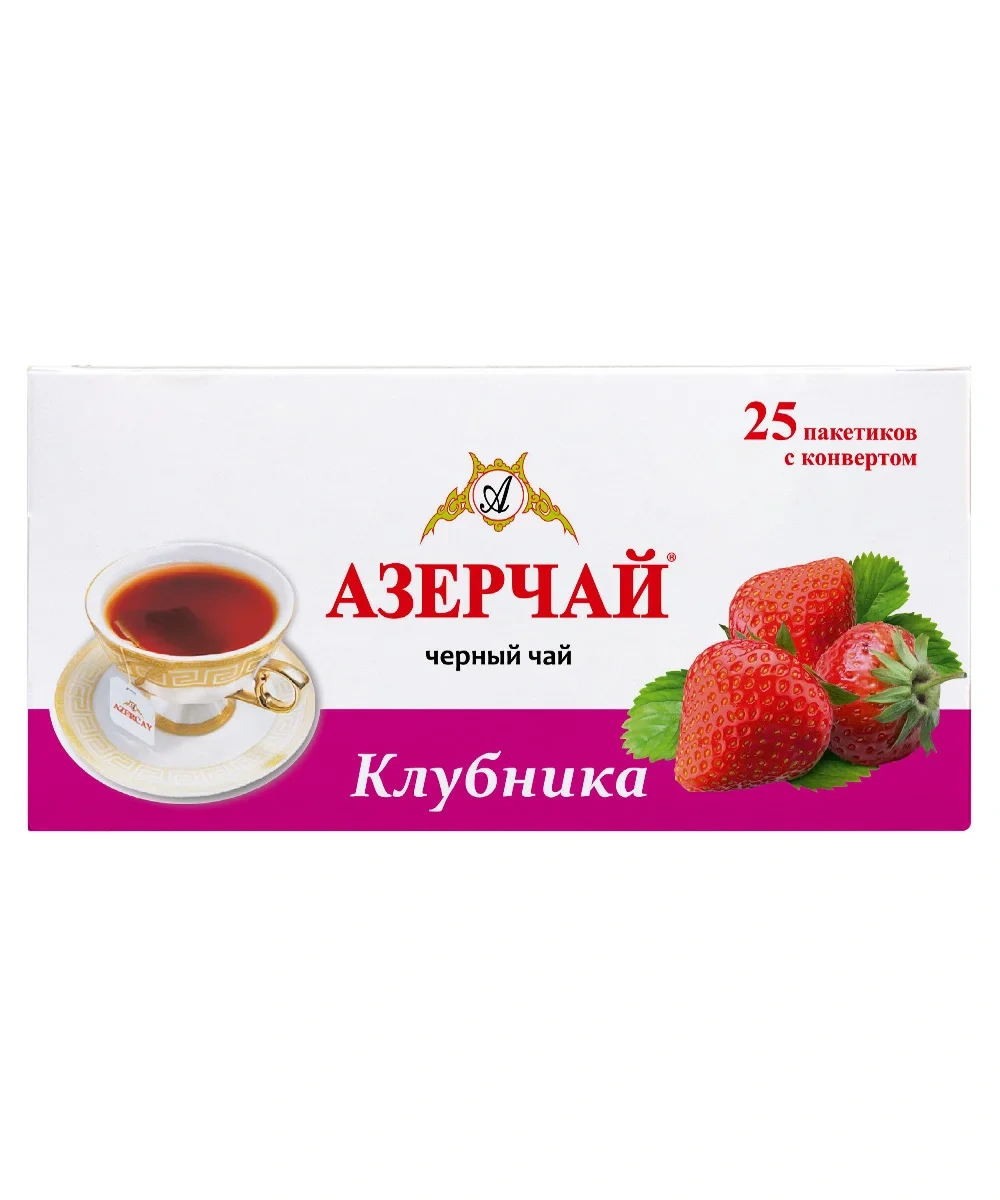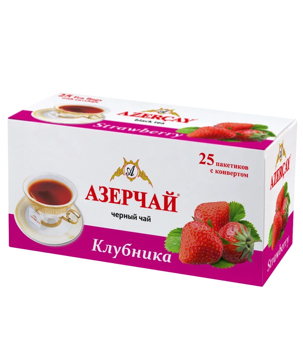 Чай Азерчай Клубника, байховый, 25 пакетиков