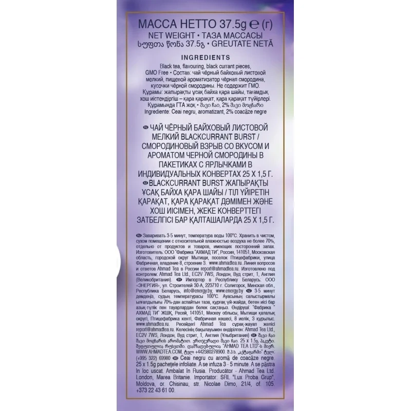 Чай Ahmad Смородиновый взрыв, черный, 25 пакетиков
