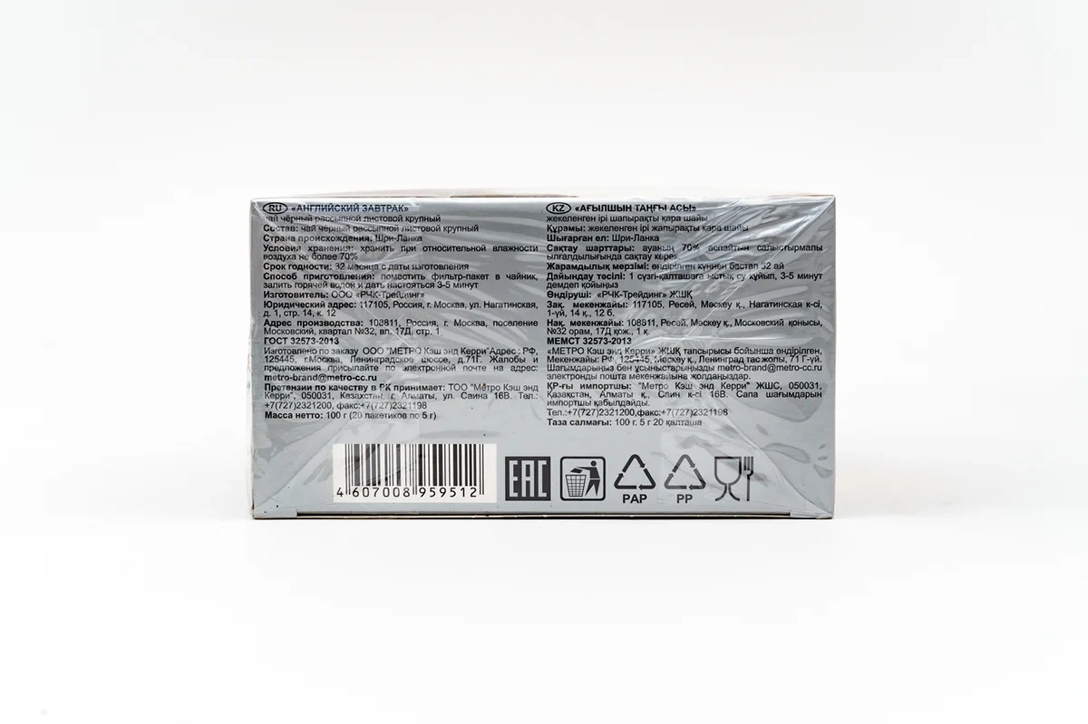 Чай Rioba Английский завтрак, черный, листовой, 20 пакетиков на чайник