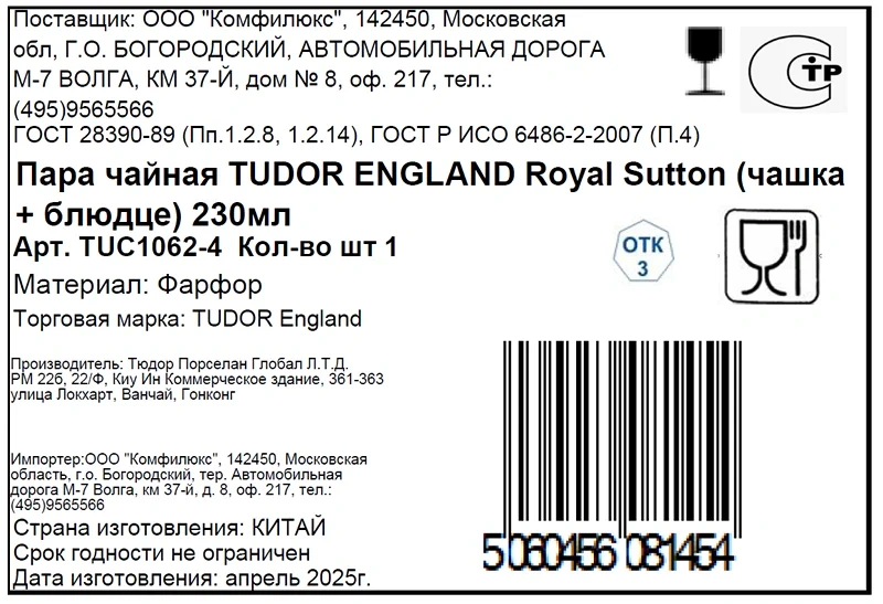 | Комплектация | чашка - 1 шт.; блюдце - 1 шт. |