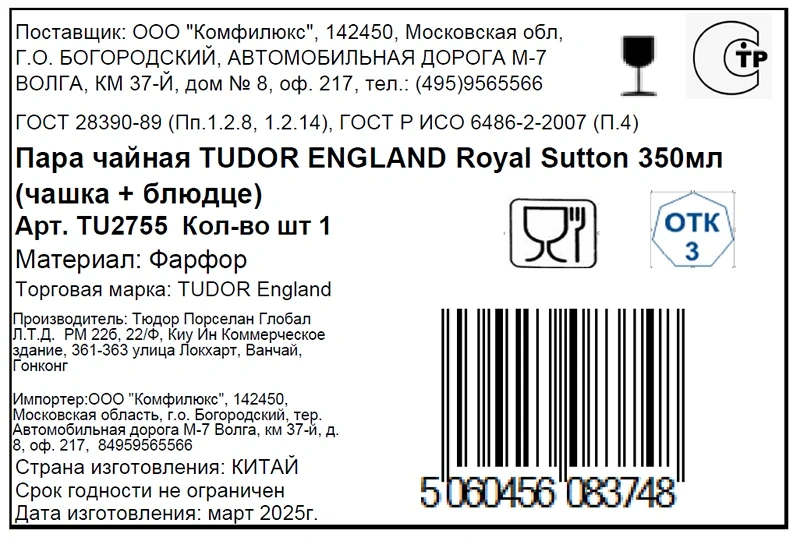| Комплектация | чашка - 1 шт.; блюдце - 1 шт. |
