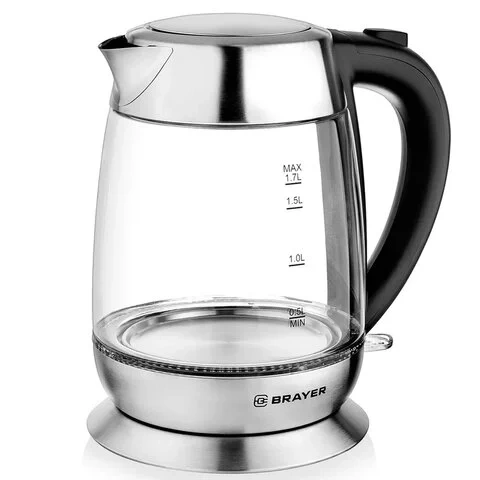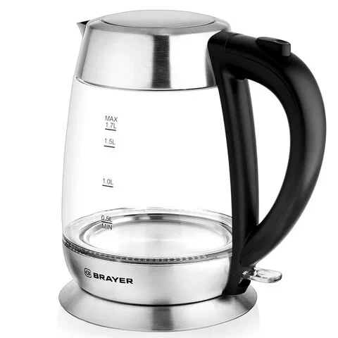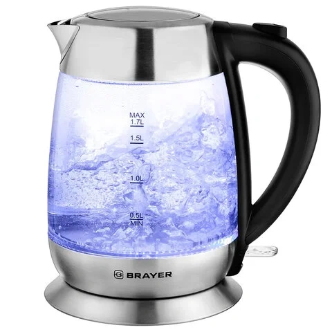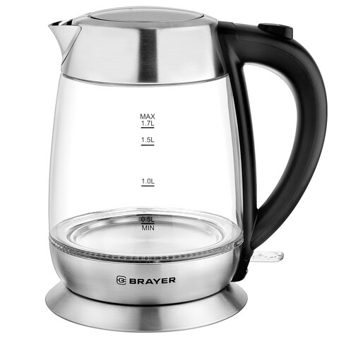 Чайник BRAYER BR1010, 1,7 л, 2200 Вт, закрытый нагревательный элемент, стекло, черный