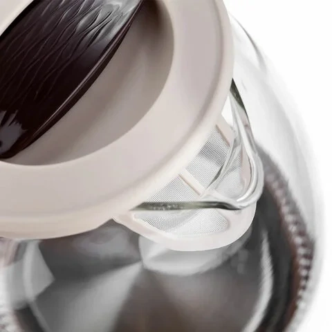Чайник оснащён скрытым нагревательным элементом, который предотвращает образование накипи и упрощает уход. Встроенный фильтр в носике защищает от попадания накипи в напиток, обеспечивая чистоту и приятный вкус воды.