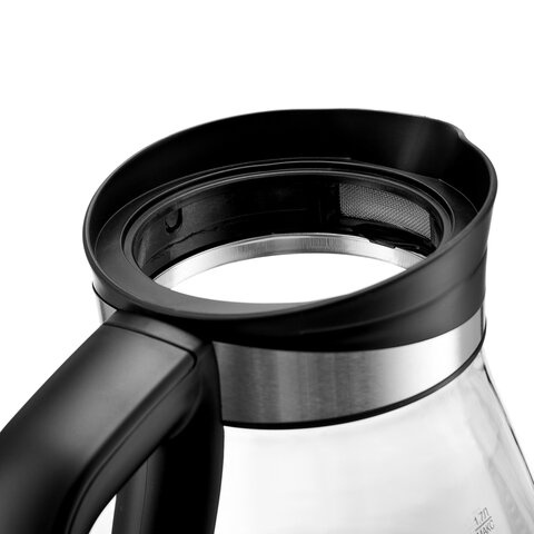 Безопасность на первом месте: чайник автоматически отключится при закипании или если в нем нет воды. Встроенный фильтр от накипи в носике обеспечит чистоту воды, а удобный индикатор уровня поможет контролировать количество жидкости. Простое механическое управление делает использование интуитивно понятным, а прочное стекло гарантирует долговечность.