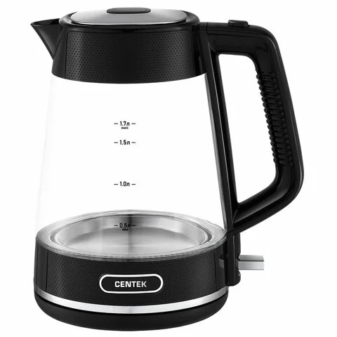 Чайник CENTEK CT-1014, 1,7 л, 2200 Вт, закрытый нагревательный элемент, стекло, черный, CT-1014 Blac