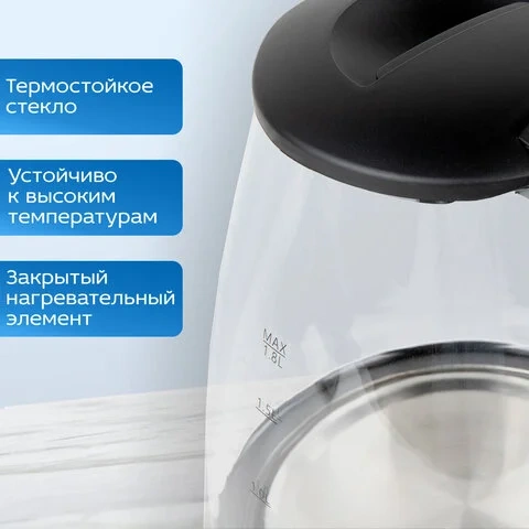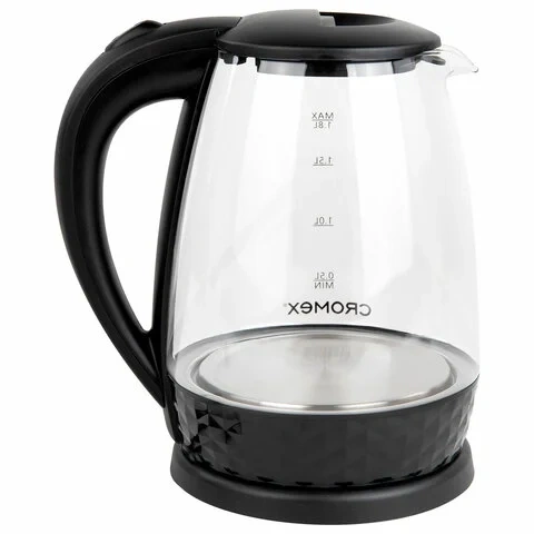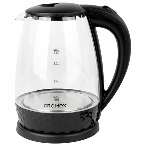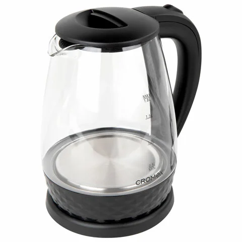 Чайник электрический CROMEX KT-308, 1,8 л, 1500 Вт, стекло, черный, 455150