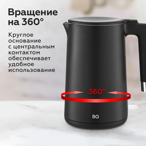 Чайник электрический с двойными стенками BQ (БИ-КЬЮ) KT1720P, 1,5 л, 2200 Вт, черный, 86198281