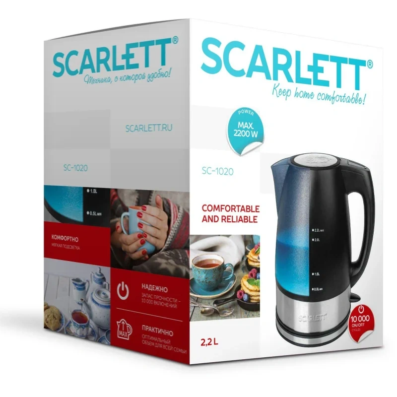 Чайник электрический Scarlett SC-1020 черный, 2.2л, 2200Вт