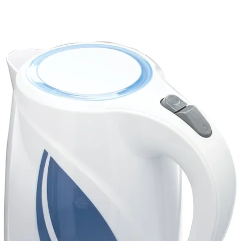 Мощность чайника составляет 2200 Вт, что позволит воде закипеть за считанные минуты. На ручке чайника находится кнопка открывания крышки, что делает удобнее его эксплуатацию.