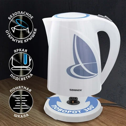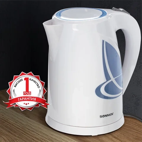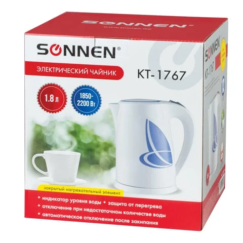 Благодаря своему дизайну, электрический чайник Sonnen KT-1767 отлично подойдет для дома и офиса. Корпус чайника изготовлен из экологичного и термостойкого пластика.