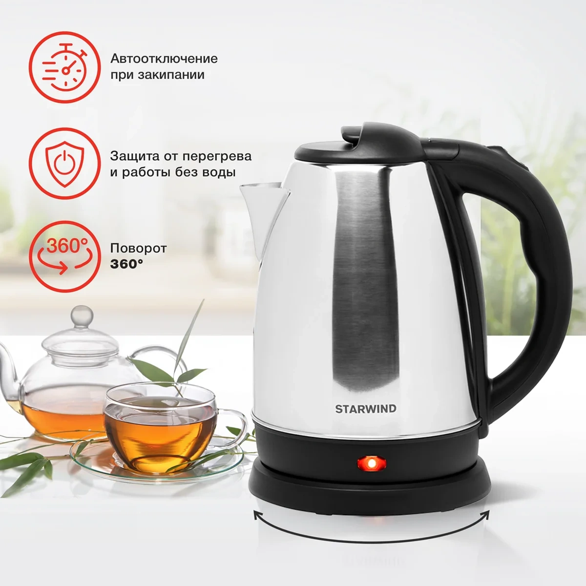 Чайник электрический Starwind SKS1053 1.8л. 1500Вт серебристый/черный (корпус: нержавеющая сталь/пла