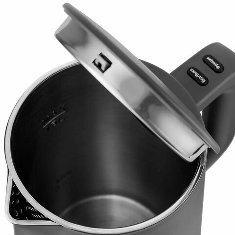 Широкое горлышко и крышка, открывающаяся в одно нажатие, делают наполнение и очистку чайника удобными.