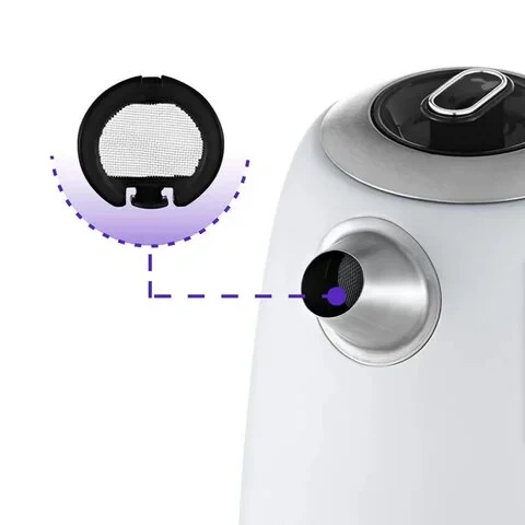 Специальная форма носика предотвращает разбрызгивание, а съёмный фильтр задерживает частицы накипи, обеспечивая чистоту воды.