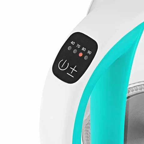 Чайник оснащён электронным терморегулятором, который позволяет нагревать воду от 40 до 100 °C, что идеально подходит для заваривания различных сортов чая, приготовления кофе или подогрева детского питания.