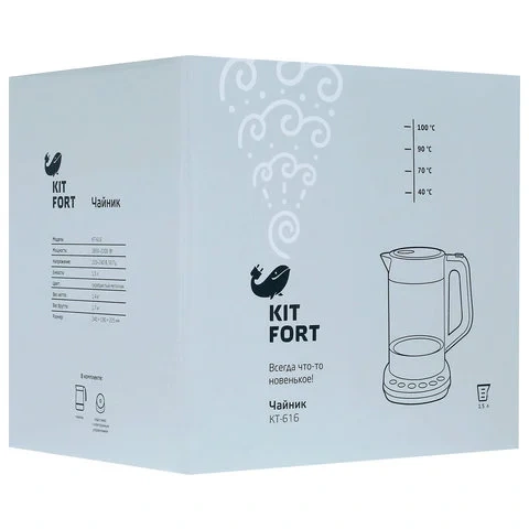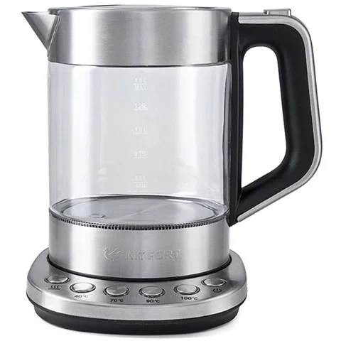 Чайник KITFORT КТ-616, 1,5 л, 2200 Вт, закрытый нагревевательный элемент, 4 режима нагрева, стекло,