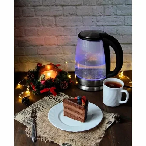 При включении чайника загорается подсветка, которая является индикатором работы и художественно подсвечивает кипящую воду.