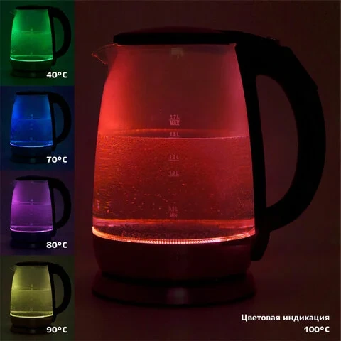 Чайник оснащён подсветкой, которая не только указывает на работу устройства, но и создаёт уютную атмосферу.